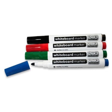4 vnt. skirtingų spalvų markeriai, valymo skystis 50 ml, magnetinis valiklis, magnetai.