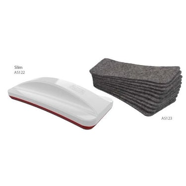 Skirtas baltoms, markeriu rašomoms lentoms valyti. Valiklis turi vietą markeriui. Padeliai keičiami.