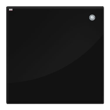 Juodas stiklinis magnetinis paviršius, matmenys 70x100, lentynėlė markeriams.